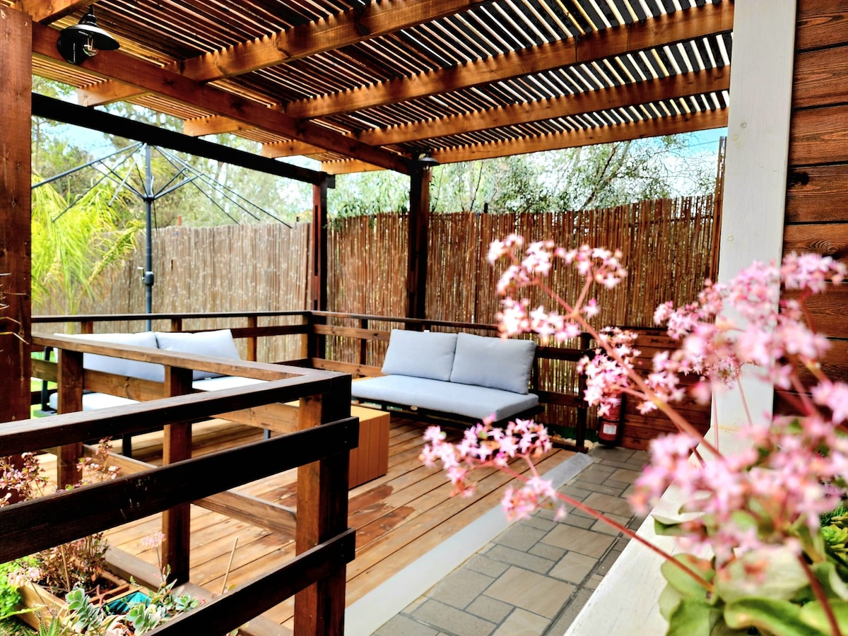 House & garden, one bedrooms for couple+protected room (MAMAD), and tourists traveling to the Dead Sea, Masada-25min, Ein Gedi, Jerusalem, Eilat. A place for romantic meetings or for a business trip. 80 min-Ben Gurion Airport. Free private parking. The house has air conditioning, a bedroom with a toilet and shower, another bathroom with a toilet,a living room, a kitchen with all utensils. In the garden there is a closed terrace, chairs in the shade of trees and roses...