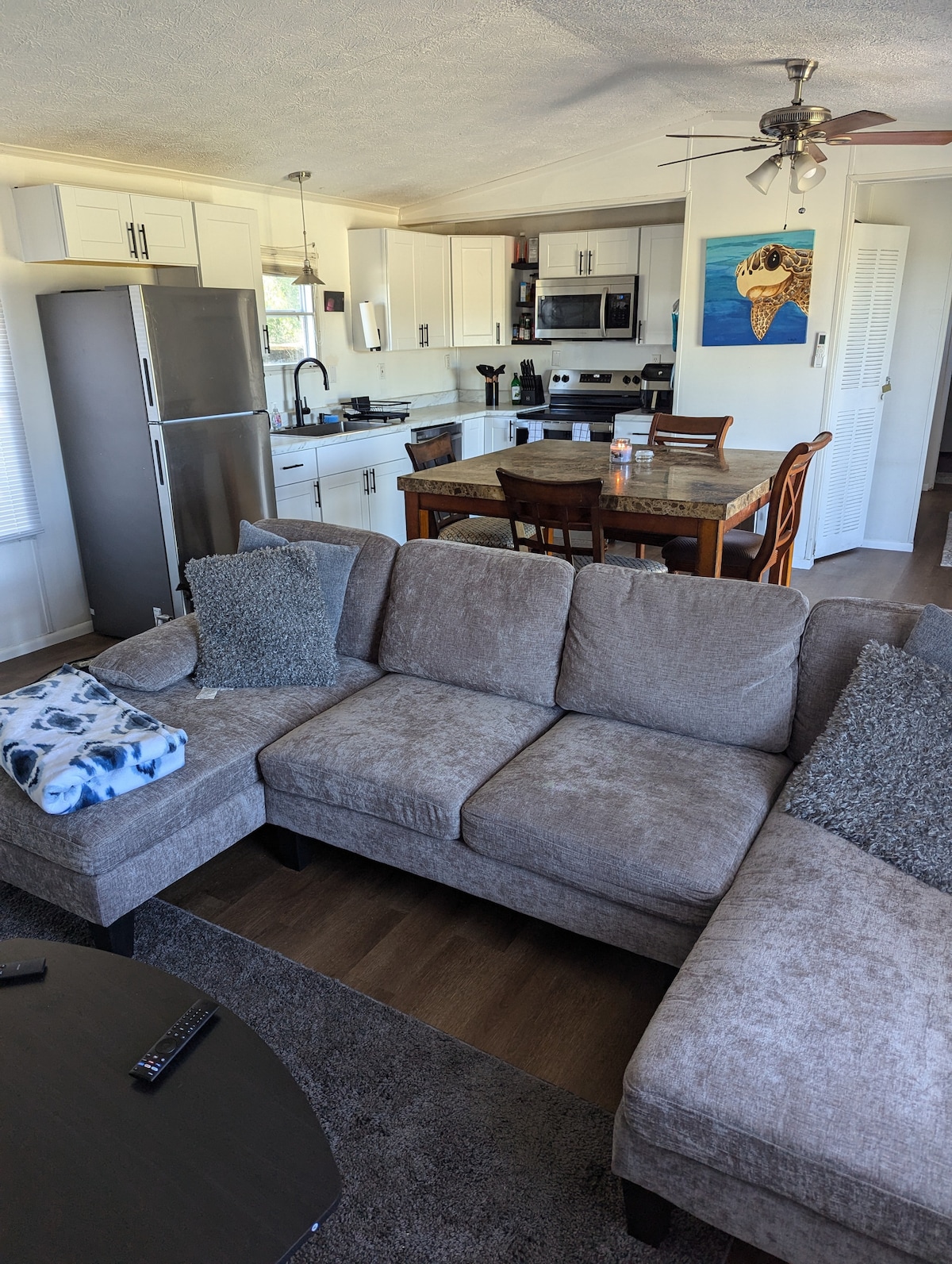 Apportez votre bateau et glissez-vous directement dans la rivière Suwannee depuis votre porte arrière et naviguez sur la rivière à la recherche d'un bon endroit pour pêcher ou d'une belle source d'eau froide bleue pour vous rafraîchir. Le logement est un mobil-home très confortable de 3 chambres et 2 salles de bain sur 5 acres sur la rive de la rivière - très calme sauf lorsque vous êtes sur le quai et qu'un gros bateau passe à moteur. La maison est entièrement meublée avec tous les draps, ustensiles de cuisine, savons et produits en papier. La télévision est ROKU sur un écran de 55 pouces. Wi-Fi disponible.