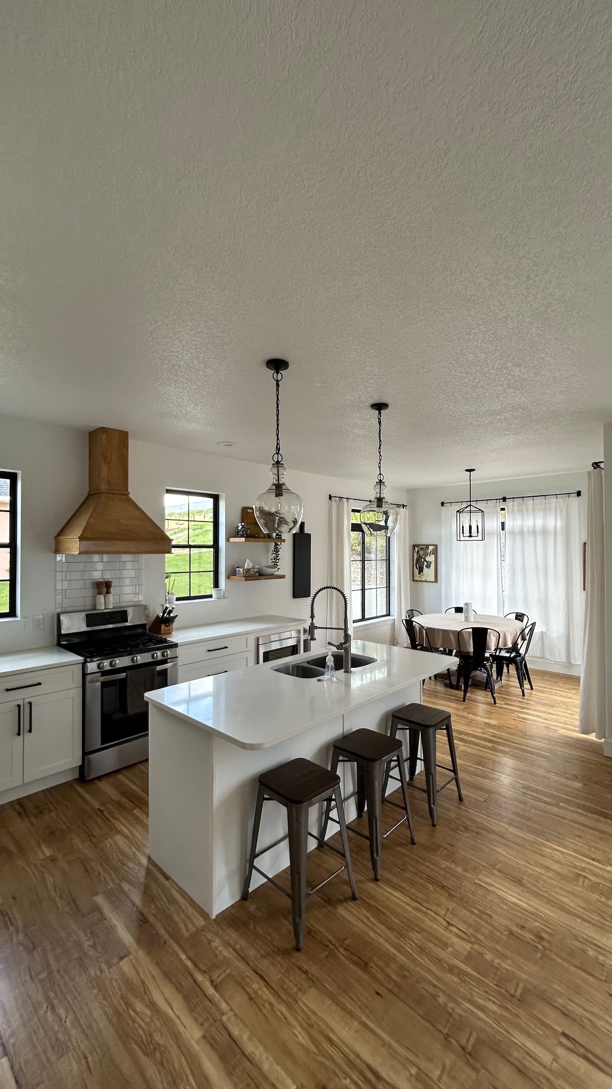 Bienvenue à la ferme de banlieue en noir et blanc, une retraite élégante de 5 chambres et 3,5 salles de bain avec deux grands salons et un bel espace extérieur. Parfait pour les familles ou les groupes, il offre une cuisine entièrement équipée, des espaces de rassemblement confortables et le charme moderne d'une ferme. Que vous vous détendiez à l'intérieur ou sur le patio, ce logement est conçu pour le confort, la connexion et un séjour mémorable.