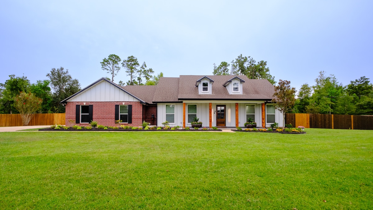Faites comme chez vous avec cette nouvelle retraite familiale de 3 chambres Lake Charles Retreat. Cette maison accueillante dispose de 2 lits queen size, 2 lits jumeaux, un matelas gonflable et 2 salles de bain. Situé à seulement 3 miles des restaurants, restaurants raffinés, magasins, divertissements, musique live et casinos. Les voyageurs peuvent profiter d'un salon ouvert confortable avec une table à débordement pour que la famille puisse jouer à des jeux. Les équipements sont le Wi-Fi, la climatisation, le fer à repasser et les machines à laver. Pas de fêtes, pas d'événements, interdiction de fumer ou de vapoter à l'intérieur.