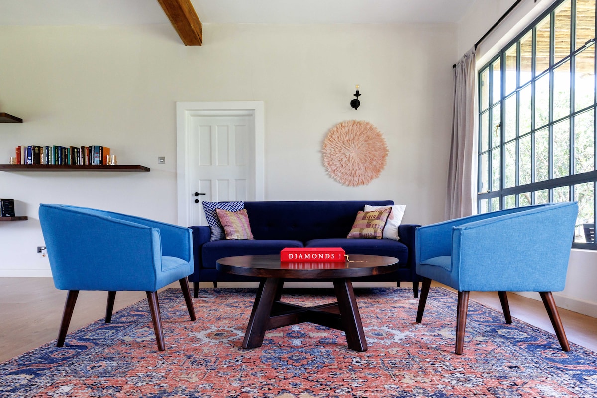 Bienvenue dans votre escapade paisible dans cette maison de 2 chambres magnifiquement meublée conçue pour le confort, le romantisme et la détente. Construite en 1966, cette maison rénovée de deux chambres conserve son charme d'origine tout en offrant un confort moderne. Réveillez-vous à des matins sereins avec des aperçus de Mt. Kenya, en vous promenant le long de la passerelle pavée en taxi sur le côté est de la propriété. Décoré avec soin avec des touches chaleureuses et tout le nécessaire, vous vous sentirez chez vous. Vos remarques sont précieuses pour nous.