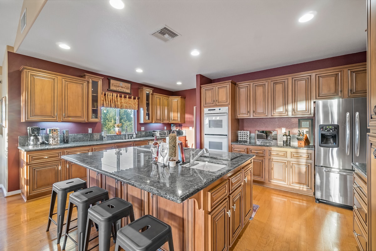 Maison privée de plain-pied avec 3 chambres sur 5 acres au cœur de la région viticole, un paradis de style resort. Arrivée autonome. Si vous êtes à la recherche d'une fête ou d'un grand rassemblement, cette maison n'est PAS pour vous. • Gril + piscine saisonnière (eau salée) + jacuzzi. Jouets de piscine sur place. • Gazébo • Téléviseurs connectés • Postes de travail dans deux chambres • Cuisine entièrement équipée et approvisionnée • Lave-linge et sèche-linge sur place • À 5 minutes en voiture de la plupart des vignobles • Table de ping-pong • Animaux acceptés, avec préavis et frais supplémentaires.