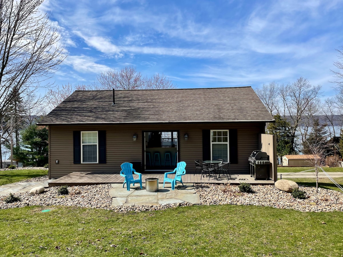Un véritable refuge... paisible, calme et majestueux. La maison est juste sur le lac avec une vue magnifique sur le lac Seneca. De grandes fenêtres donnent sur le lac depuis le séjour et la chambre avant. Maison individuelle unifamiliale située dans une rue sans issue limitée à la circulation locale, cette maison de 2 chambres et 1 salle de bain et demie toute l'année vous fournira tout ce dont vous avez besoin pour votre prochaine escapade. La maison est parfaite pour 2 couples ou une famille de quatre personnes. Chambre supplémentaire au-dessus du hangar à bateaux avec un canapé convertible.