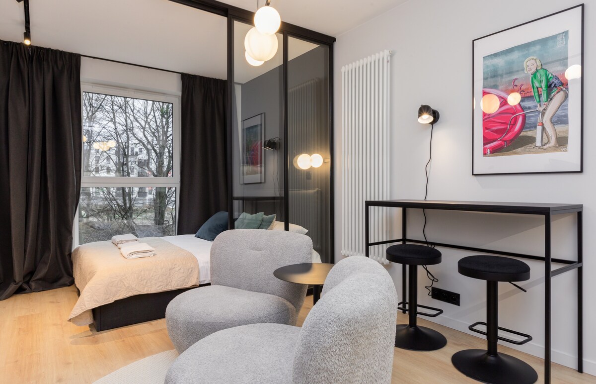 Un appartement moderne et haut de gamme, idéal pour les couples (jusqu'à 2 personnes). Proche du centre, très bien desservi par les transports en commun – il y a des arrêts de bus et de tramway à proximité immédiate. L'appartement est situé dans un immeuble des années 1970, situé dans un quartier résidentiel calme, à environ 1,5 km à pied de la vieille ville. Les locaux sont situés au deuxième étage d'un immeuble équipé d'un ascenseur. Il y a beaucoup de places de stationnement gratuites disponibles dans le quartier.
