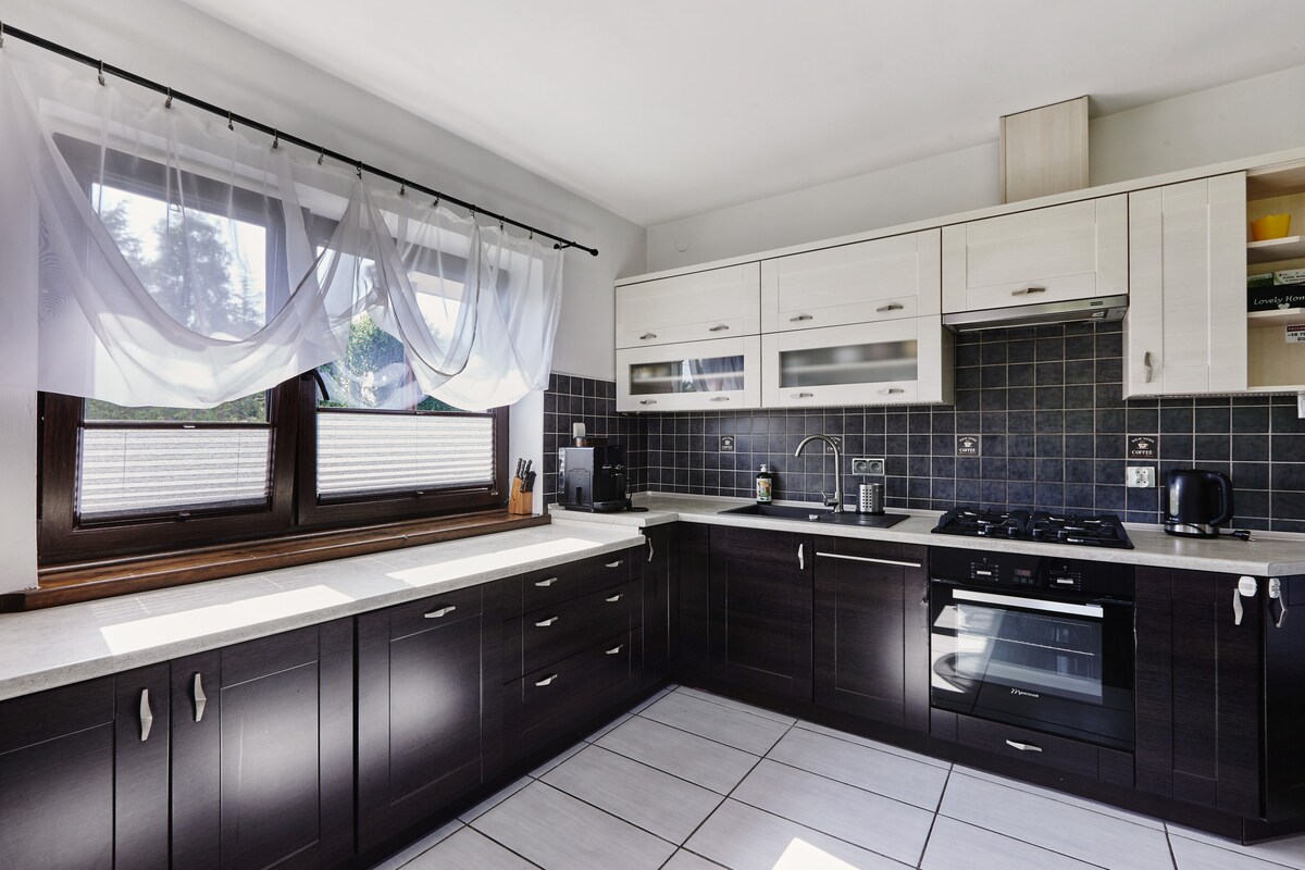 Maison à louer à Godziszka. Accès en voiture à environ 10 minutes de Szczyrk. Disposition des pièces à l'étage : chambre pour 3 personnes, chambre pour 2 personnes, canapé avec canapé convertible, cuisine, salle de bain. Balcon. En outre, un grenier avec 1 lit et une salle de jeux. Disposition des pièces au rez-de-chaussée : deux chambres pour 3 personnes, une chambre pour 2 personnes, cuisine, salle de bain, terrasse. Dans les salons, télévision et au premier étage, table de baby-foot. Cuisines entièrement équipées. Serviettes, savon, shampoing. Places de parking pour 5 voitures.