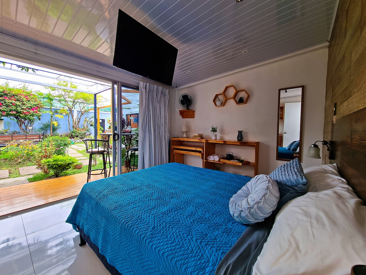 Profitez de notre chambre confortable à San José, parfaite pour deux personnes. Notez qu'il s'agit d'un espace entièrement privé et indépendant, mais que l'entrée principale est partagée. Vous pouvez facilement rejoindre la ville en bus et explorer ses attractions culturelles. Vous serez également à proximité des universités, des centres commerciaux et du Barrio Escalante, un paradis gastronomique avec de nombreux délices culinaires. Veuillez noter qu'il n'y a pas de cuisine, et que la disponibilité du garage est soumise à une demande. Nous avons hâte de vous accueillir !