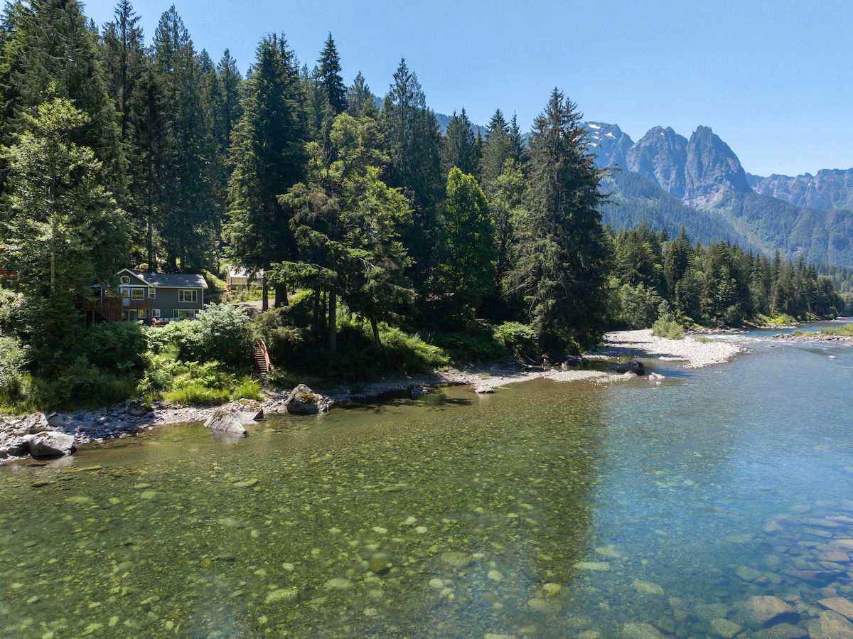 Magnifique chalet au bord de la rivière, récemment rénové, dans les montagnes Cascade, directement sur la rivière Skykomish. Offrez vous une vue imprenable sur le mont Détendez-vous près du foyer extérieur ou sur l’imposante terrasse panoramique pour un bain tourbillon, une douche en plein air et un barbecue, et profitez de l’espace luxueux et moderne de style montagnard à l’intérieur : sauna, lit king size, mezzanine avec lit queen size, cuisine neuve et bien plus encore! À 30 secondes de cascades spectaculaires, à 2 minutes de superbes sentiers de randonnée et à 30 minutes de la station de ski de Stevens. Animaux acceptés moyennant des frais. Réservez le chalet Three Peak voisin pour créer encore plus de souvenirs en groupe!