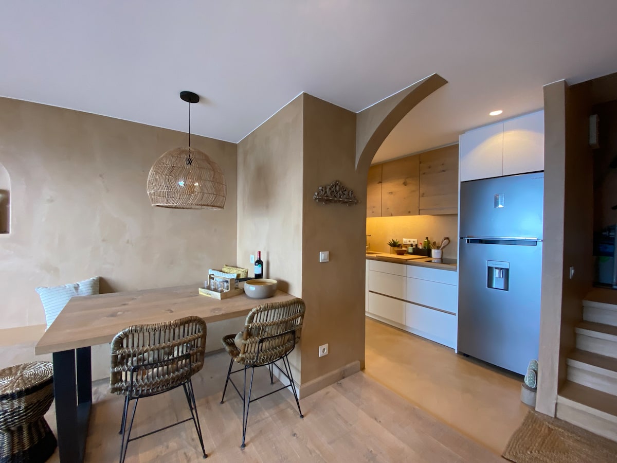 Loft de 75m2 avec une architecture moderne et unique. Soigneusement conçu, décoré avec des meubles de style vintage et de l'art soigneusement sélectionné au fil des ans. Cette combinaison, ainsi qu'une vue spectaculaire et impressionnante sur la baie de Cadaqués, le rend absolument unique. Il est situé à seulement 1 minute à pied de la plage d'Es Poal, à environ 45m. PET friendly. Veuillez vous renseigner en privé sur le coût supplémentaire par nuit pour votre adorable ami à fourrure.