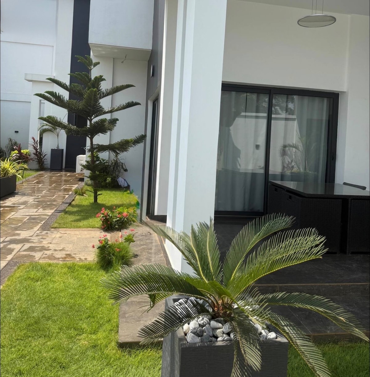 Ce logement affiche un style résolument unique, épuré et contemporain. Une architecture moderne, spacieuse et lumineuse . Cette villa est le lieu idéal pour vos séjours à Lomé. La touche nécessaire pour rendre votre séjour parfait et inoubliable . Son beau jardin tropical ainsi que son grand Rooftop sont essentiels pour vous évader lors de vos temps de détentes. C’est un véritable havre de paix situé à 10mn de l’aéroport dans un cadre Authentique.