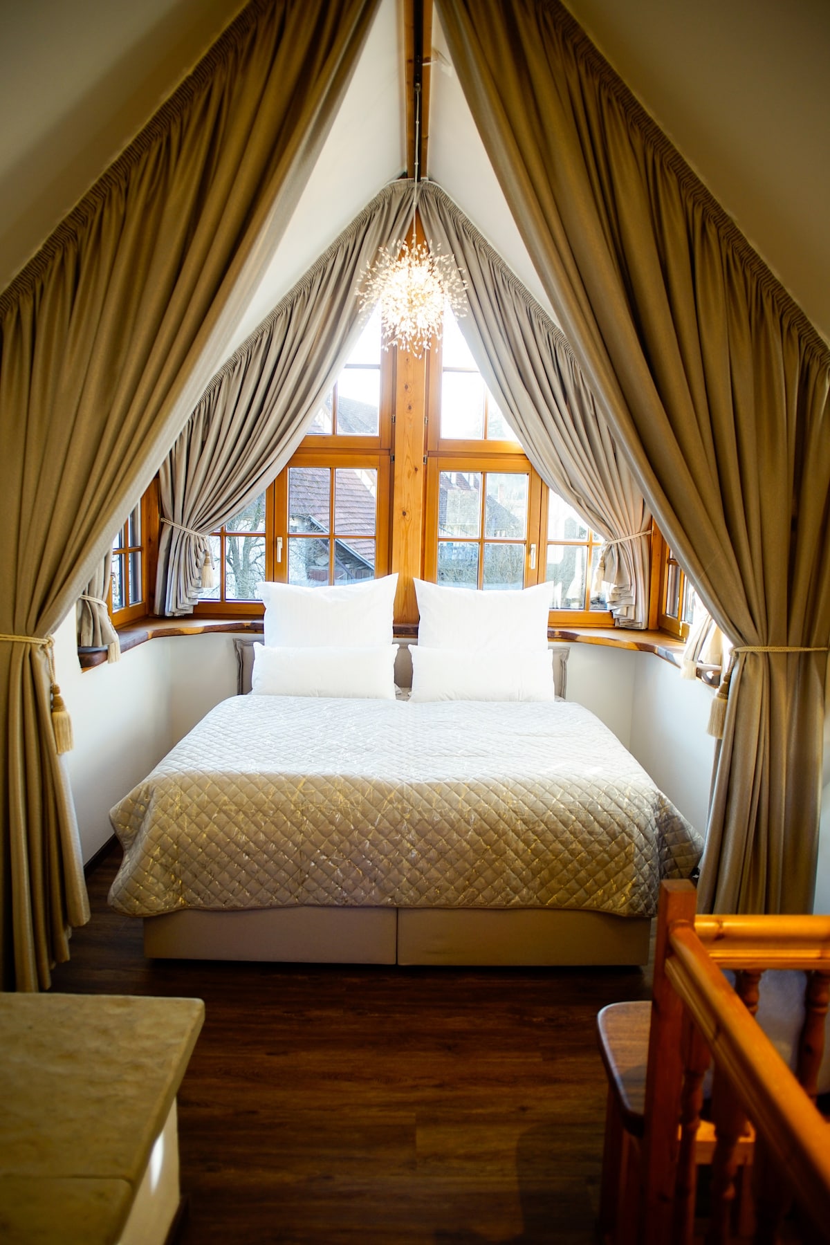 La maison classée de 1730 se trouve au pied de la montagne sacrée de Haute-Souabe - le Bussen - et directement sur le sentier de randonnée, non loin de la piste cyclable du Danube, en bordure du Jura souabe. Lors de la restauration minutieuse à l'aide de matériaux écologiques et durables, de nombreux détails tels que les sols inclinés, les hauteurs de pièce parfois basses et un escalier raide ont été conservés. Ainsi, on peut se replonger dans le passé tout en profitant du confort moderne du présent.