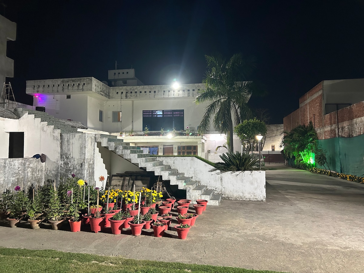 Notre maison d'accueil offre une expérience luxueuse avec un coin salon extérieur confortable. Idéalement situé à quelques minutes des meilleurs points touristiques de Lucknow, c'est le point de départ idéal pour explorer la ville. Réservez votre séjour chez nous dès maintenant et découvrez la ville comme un habitant ! Vous êtes seulement : - à 1,9 km de Marine Drive ; - à 6,5 km d'Imambara ; à 7,6 km de Tunday Kababi ; à 1 km des bazars colorés les plus proches, de l'hôpital, du poste de police et des délicieux restaurants Lucknawi et d'une grande facilité de déplacement !