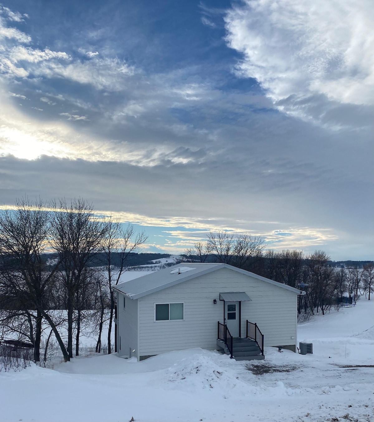 SITUÉ sur LE LAC ANTELOPE, à 14 miles au nord de Harvey, ND - Décoré et prêt pour les Fêtes! - 3 chambres, 2 salles de bain - Nouveau, tranquille, privé et confortable - Famille et animaux acceptés avec des jouets et des jeux pour tous les âges - Cuisine spacieuse, propre et bien approvisionnée - Grandes fenêtres avec vue imprenable - Téléviseurs Roku dans toutes les chambres - Wi-Fi rapide ; - Foyer, hamac et cour de 1,5 acre - Accès au lac dans le jardin par un sentier pédestre/VTT - Un joyau caché prêt pour les séjours
