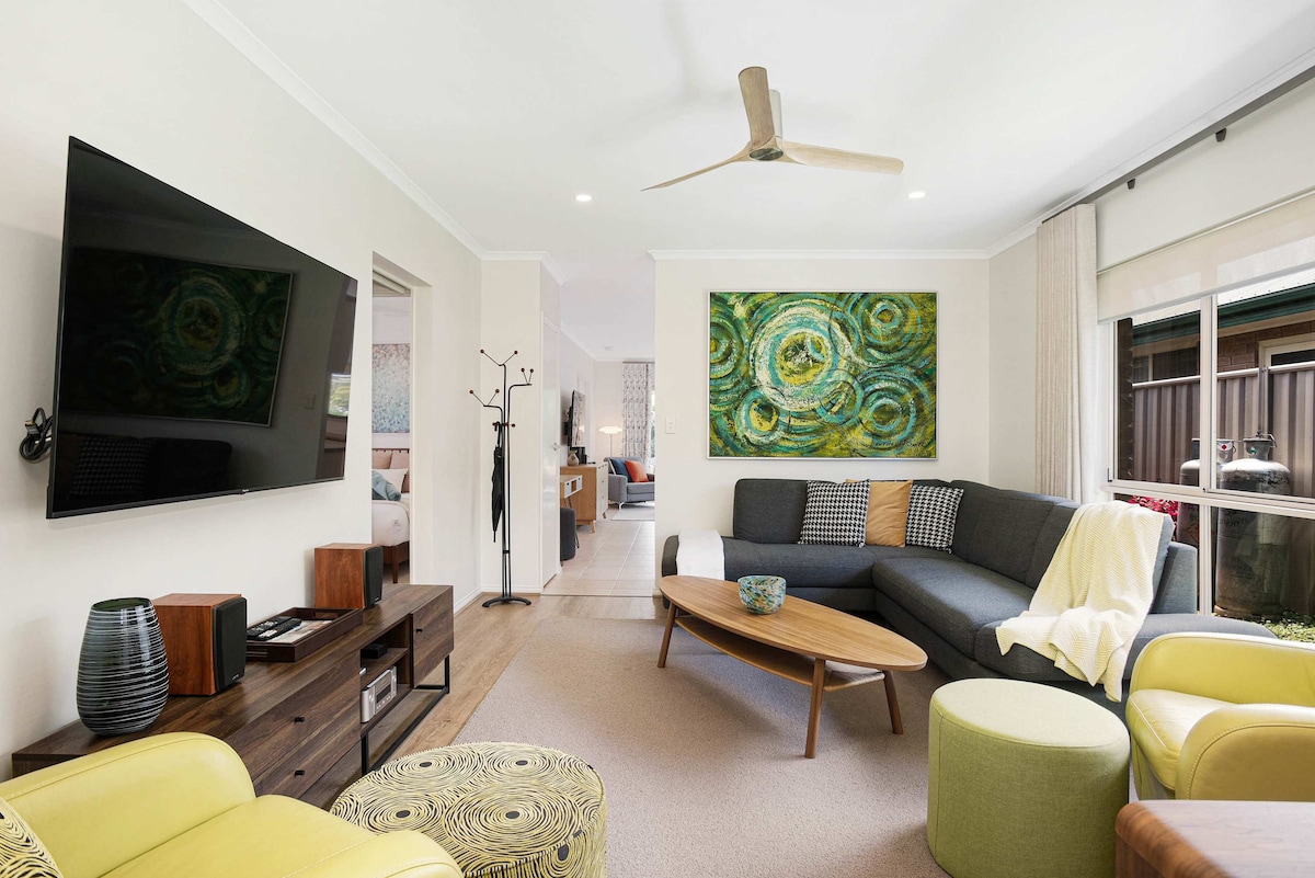 Située sur les eaux paisibles d'Encounter Lakes, cette retraite magnifiquement décorée capture le meilleur du calme côtier. La lumière du soleil inonde le salon lumineux et se déverse harmonieusement dans la cour arrière privée, où vous pouvez sortir le kayak pour une douce sortie en mer ou allumer le barbecue pour un dîner sans effort au bord du lac. Avec un système de chauffage et de climatisation à deux blocs pour le confort en toute saison, ainsi qu'un stationnement sur place, cette maison soigneusement conçue offre une escapade vraiment sereine au bord de l'eau.