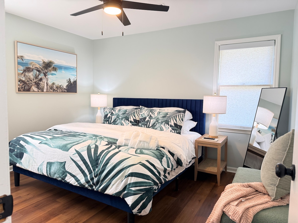 Venez profiter de cette belle maison d'hôtes privée idéalement située à quelques minutes des commerces, de la nourriture, des lieux et de la plage. À votre arrivée, nous avons de l'eau en bouteille fraîche pour étancher votre soif. Au fur et à mesure que la soirée s'installe, promenez-vous sur le sentier naturel et admirez le coucher de soleil depuis le quai du quartier. Une télévision connectée de 70 pouces vous attend à votre retour pour que vous puissiez regarder vos films préférés (sans partager l'accoudoir). Venez vous détendre ! Ce sont des vacances pour vous.