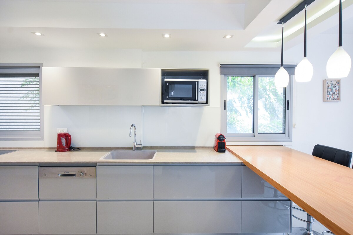 . Un bel appartement de 3 pièces, récemment rénové et modifié pour accueillir des voyageurs de courte durée. Il est tout simplement parfait pour les personnes seules, les couples et les familles. À quelques pas de la mer et des meilleurs restaurants, les boîtes de nuit, les cafés et les boutiques de la ville. Profitez d'un superbe emplacement dans un merveilleux appartement. Il y a un abri antiatomique dans le bâtiment adjacent. C'est très proche et très facilement accessible. Il y a une zone de sécurité au 1er étage et un mamad un étage au-dessus de l'appartement.