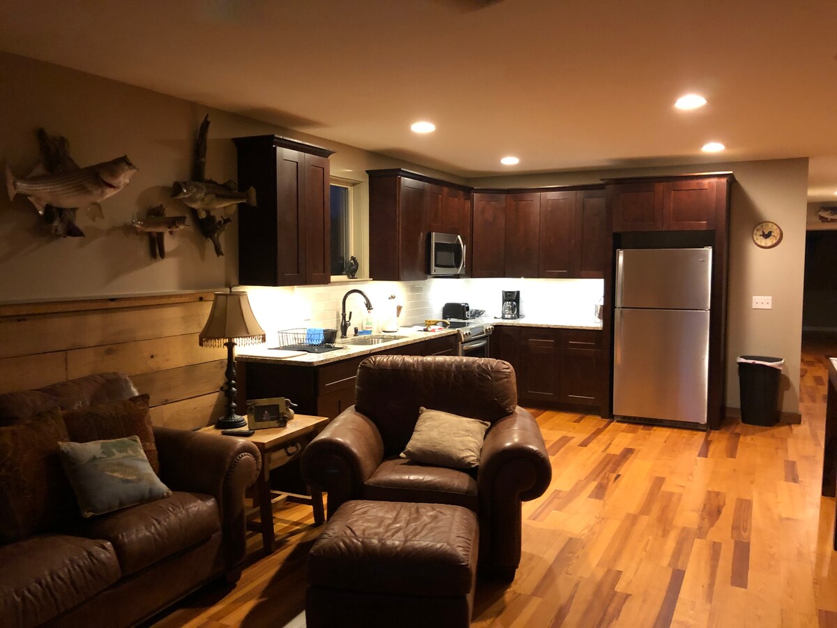 Bienvenue au lac ! Notre toute nouvelle maison d'hôtes offre tout pour une escapade relaxante : lit queen avec vue sur le lac, cuisine complète (sans four), WiFi, télévision intelligente et salle de bain spacieuse. Profitez de la pêche, de la randonnée ou de la cueillette de fruits (saisonnière) sur notre propriété de 5 acres avec sentiers privés, quais et terrasses. À seulement 15 minutes des magasins et des restaurants de Calhoun, et à moins d'une heure de Chattanooga ou d'Atlanta. Jusqu'à 2 chiens sympathiques et bien élevés sont les bienvenus (pas de chats). Évadez-vous, détendez-vous et profitez de votre retraite paisible au bord du lac