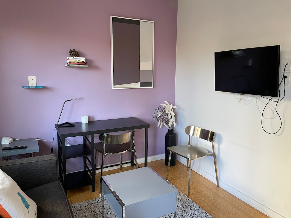 À quelques minutes du théâtre grec, de l'UC Berkeley, du centre-ville de Berkeley et du BART, de Chez Panisse et des restaurants primés, de LBL et bien plus encore, ce studio spacieux bénéficie d'une lumière naturelle au cours de la journée. En face de la cour de notre voisin, vous pouvez même voir la faune passer. Avec un lit king size, un chauffage de cheminée, une belle salle de bain, un placard, un bureau assis/debout, un Keurig, une télévision et sa propre entrée, vous pouvez être à l'aise que vous soyez ici pour affaires ou pour le plaisir !