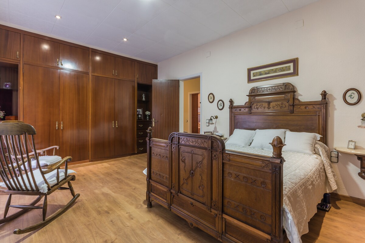 Chambre Suite avec lit double pour 1 ou 2 personnes dans une maison majestueuse du XIXe siècle dans le centre de Sant Fost de Campsentelles. Elle dispose d'une salle de bain privée. Il dispose d'un jardin de 500 m2 pour se détendre et travailler confortablement. Très bien desservi par tous les services et les transports en commun, et à seulement 20 minutes de Barcelone. Avec des espaces communs : cuisine, buanderie, salle à manger, 3 salles de bain partagées. Parfait pour travailler dans un environnement calme et loin du bruit de la ville