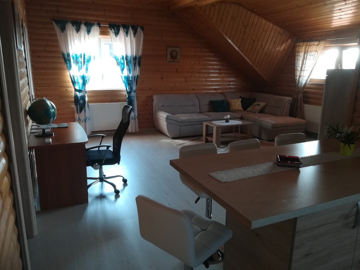 Studio spacieux et climatisé (★★★) de 60m2 situé dans la maison familiale. Proche de l'aéroport international de Zagreb (ZAG), qui se trouve à 10 minutes en voiture avec la possibilité de transport depuis/vers l'aéroport. Parking et Wi-Fi gratuits (Internet optique). Nous avons de beaux chiens paisibles qui ne sont pas en contact avec les voyageurs. N'hésitez pas à demander quoi que ce soit ! :)
