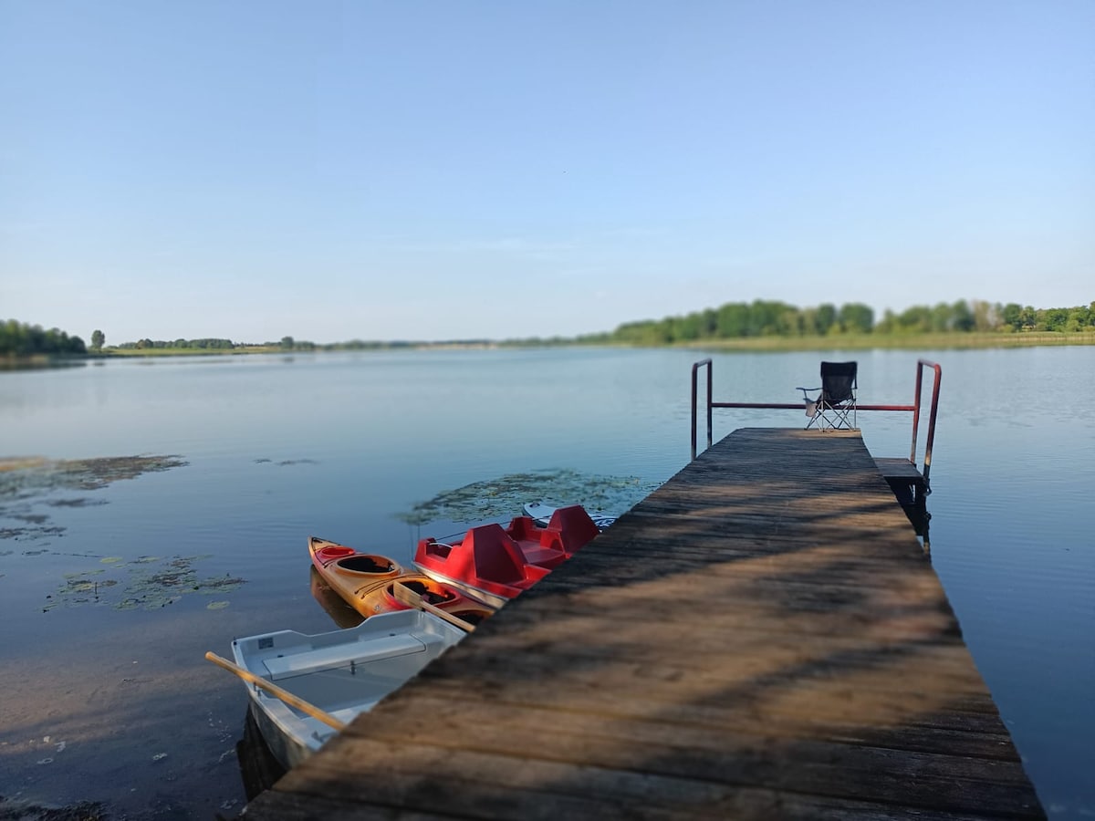 Les clients ont à leur disposition un canoë et un bateau électrique ainsi qu'un kit de stand-up paddle. Depuis la propriété ressemblant à un parc, une jetée d'environ 40 m de long mène au lac. Visitez le plus grand marché hebdomadaire de Pologne à Lyck, la ville natale de Siegfried Lenz. De là, il est également possible d'explorer le parc national de la forêt vierge polonaise, de faire un tour sur le canal Oberland ou de visiter les ruines du château de Schlobitten, ancien comté de Dohna. ...et bien plus encore.