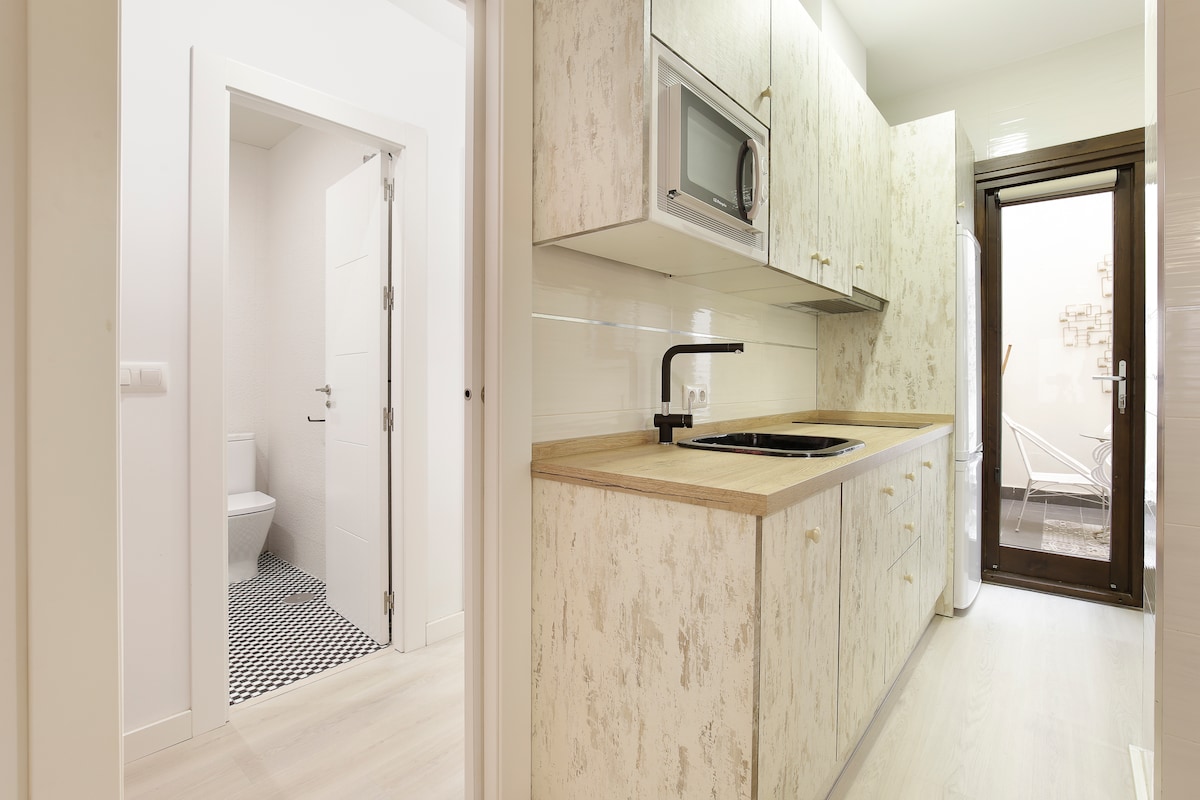 Laissez-vous séduire par l'enchantement de Grenade dans cet ancien hôtel des années 1950, transformé en appartements. Vous vous sentirez comme à la maison, de sa luminosité à sa décoration aux motifs de la ville. Distribué dans le salon/cuisine, canapé-lit, chambre et salle de bains. Il dispose d'un ascenseur, depuis le premier étage. Parking de 2,5 x 6 mètres, inclus dans la réservation, dans le bâtiment d'à côté, avec un accès limité aux très grands véhicules. Le chek in se fait de manière autonome avec application gratuite pour le téléphone