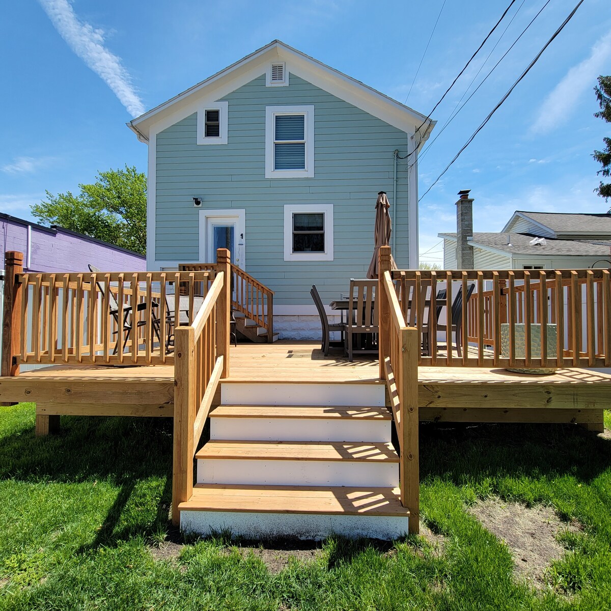 Mignon et confortable à l'intérieur, amusant et relaxant à l'extérieur. Vous ne pouvez pas manquer ce bungalow bleu vif dans une rue calme à quelques pas du centre-ville. 3 chambres à coucher, 2 salles de bains complètes et une grande cuisine, équipée de tout le nécessaire. La grande cour arrière est idéale pour profiter des grillades, des jeux et d'un feu de soirée. Comprend un lave-linge et un sèche-linge au sous-sol. Parfait en ville, accessible à pied jusqu'au marché fermier, aux restaurants du centre-ville et aux belles plages du lac Michigan !