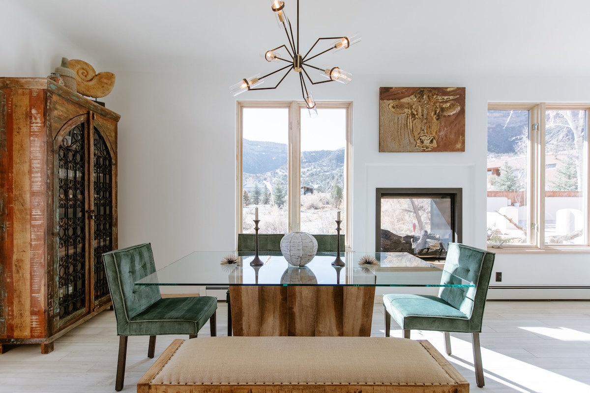 Cette maison de style adobe récemment rénovée vous donnera l'impression d'être dans un complexe hôtelier avec une vue imprenable. Parfait pour des vacances en famille, un voyage entre filles/garçons, un voyage en VTT, une escapade romantique, une dégustation de vin ou tout simplement une escapade d'un week-end, c'est la maison idéale. À proximité de nombreuses activités de plein air, notamment la randonnée pédestre, la pêche, le VTT, le paddle board/kayak/tubing et le golf. Situé à 5 minutes de Two Rivers et à 25 minutes des vignobles de Palisade. Nous offrons l'expérience complète du Colorado en plein air.