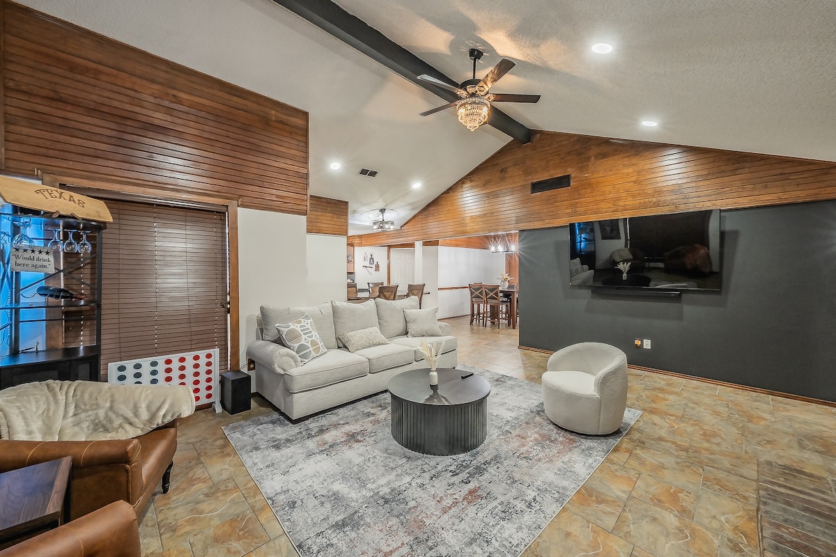 Détendez-vous dans ce logement calme et récemment rénové entouré d'hectares de beaux chênes. Profitez de l'oasis de la cour arrière et faites un plongeon dans la piscine ou détendez-vous dans le jacuzzi. Vous pourrez également profiter d'un bon barbecue dans la cabane extérieure équipée d'un gril Blackstone, d'un réfrigérateur pleine grandeur et d'une télévision extérieure. C'est aussi l'endroit idéal pour profiter d'une escapade paisible ou rester à l'intérieur et regarder tous vos films et émissions préférés. Ce coin de paradis est l'escapade tranquille idéale pour se détendre et se ressourcer.