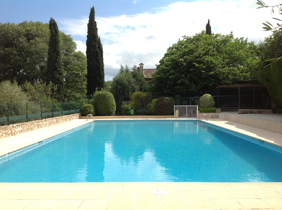 Appartement en rez de chaussé dans une belle villa de 1900. Piscine et jardin accessible. Appartement entièrement refait à neuf. Nous vous proposons le petit déjeuner en supplément. Maison chaleureuse dans un petit village provençal proche de grasse. A 30 minutes de cannes et des plages. Golf à proximité