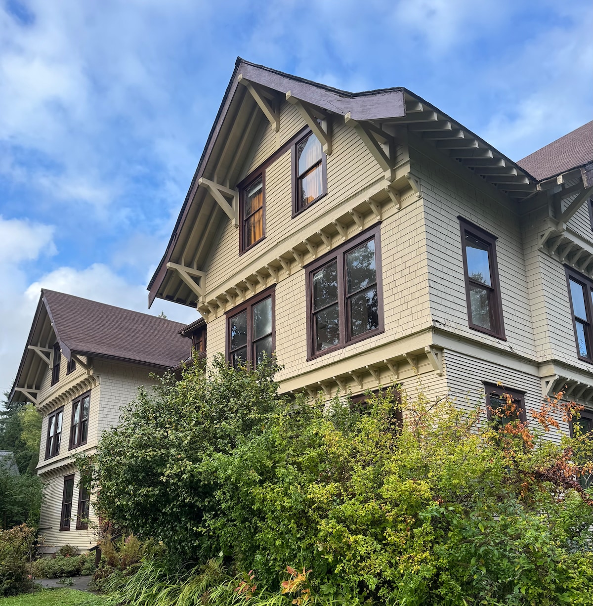 Historic refinished wood floors and soft light create a cozy retreat in the Sword Fern Room, once the innkeeper’s bedroom at the Historic McCleary Hotel. At the south end of the second floor, this compact room features a double (full) bed and charming views of the garden’s mature landscaping. Perfect for solo travelers with a pet or couples who don’t mind sharing a smaller bed. This is our designated pet-friendly room thanks to refinished wood floors. Guests share a nearby hall bathroom.