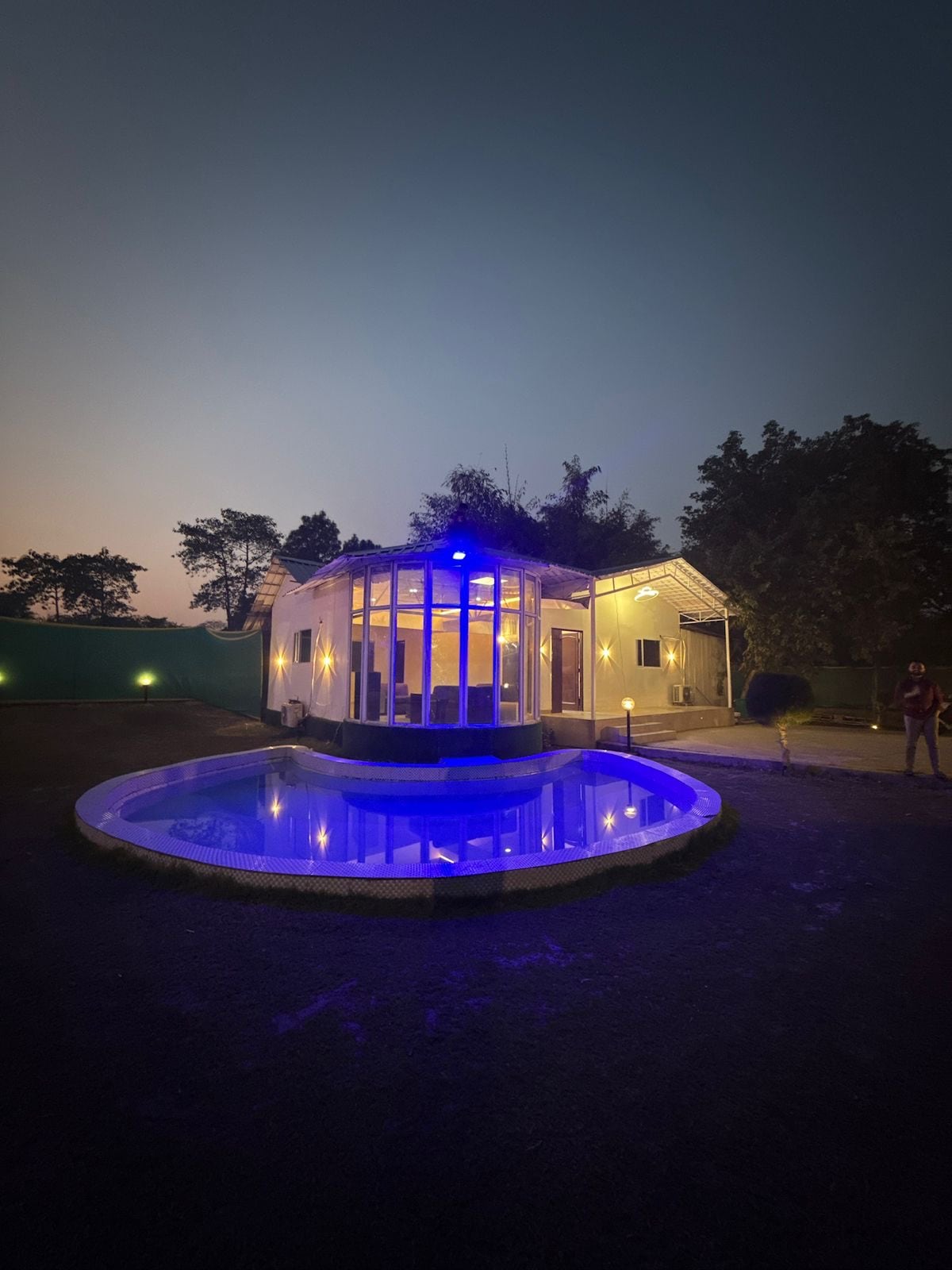 Nichée dans les paysages captivants de Noida, Ananda s'étend sur 2,5 acres de beauté naturelle, offrant un havre de tranquillité. En entrant, des arbres imposants et une verdure verdoyante créent un jeu d'ombres, vous enveloppant dans la splendeur de la nature. Dotée de six chambres et d'équipements tels qu'un étang à poissons, une piscine, une table de billard et une table de ping-pong, cette retraite privée est parfaite pour les mariages, les vacances et les événements. Pour en savoir plus, recherchez 8MH Organic. Dans l'attente d'une réponse de votre part !