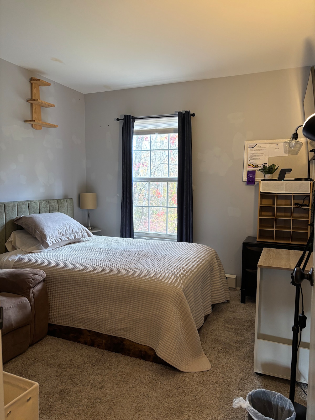 Détendez-vous lors de votre voyage dans ce logement paisible et central. Vous aurez une arrivée autonome et une entrée semi-privée. L'espace se trouve au deuxième étage de ma maison et comprend deux grandes pièces. Une chambre et un séjour avec une salle de bain privée complète, offrant une expérience semblable à un appartement. Cela fonctionne parfaitement pour les couples qui ont des habitudes de sommeil différentes. Un petit réfrigérateur, un micro-ondes et une machine Keurig avec dosettes de café. NChill dans un espace qui ressemble à la maison! Pas de cuisine ni de buanderie.