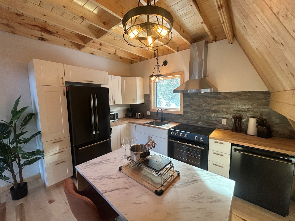 Bienvenue à The Summit House, une cabane en A entièrement rénovée à moins de 1 mile du centre-ville de Stowe. Réveillez-vous avec une vue sur la lumière du matin qui traverse la forêt depuis votre chambre avec mur de verre. Détendez-vous après une journée d'exploration des montagnes dans l'immense douche à effet pluie de style spa. Installez-vous après le dîner autour de la cheminée à bois moderne tout en regardant vos émissions préférées sur la télévision de 50". Ce n'est pas qu'une location, c'est une expérience. Le dernier ajout à la collection OM Home Residences.