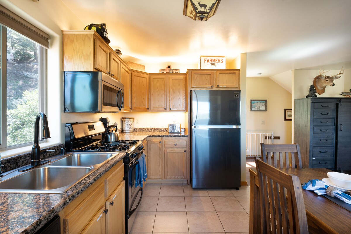 Le coucher de soleil le plus éblouissant que vous ayez jamais vu avec une vue panoramique sur le lac Arrowhead au loin ! Ce chalet rustique se trouve en bordure des montagnes San Bernardino et dispose de tout ce dont vous avez besoin pour vous évader. Green Valley Lake est situé à 7 200 pieds, ce qui en fait le village le plus haut, ce qui signifie plus de neige en hiver et des températures plus fraîches en été. Il y a une plage de baignade avec des sauveteurs, des bateaux à louer et un lac de pêche bien approvisionné à 5 minutes. Nous sommes également proches des pistes de ski et des randonnées.