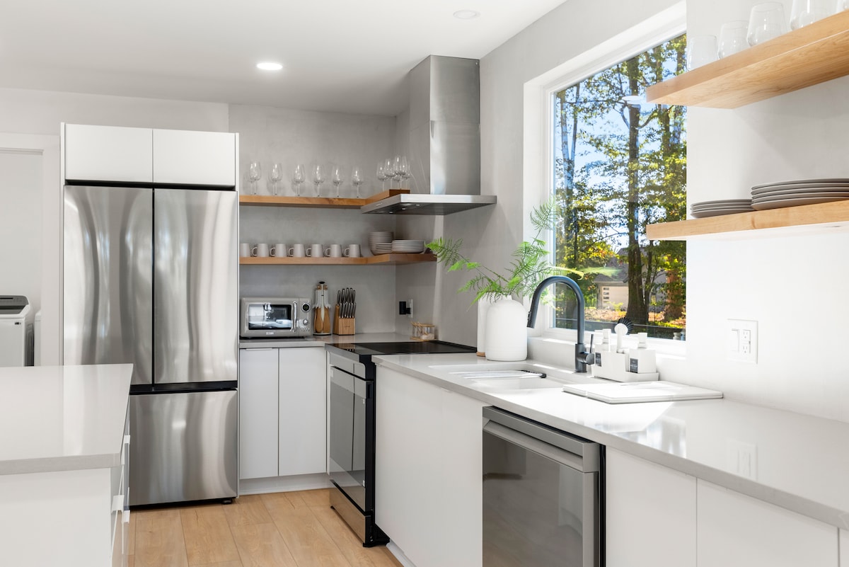 Bienvenue au Mountain Modern Base Camp où vous pourrez profiter de la solitude de la nature tout en étant à quelques minutes en voiture d'activités illimitées. Propriété privée de plus de 7 acres avec foyer extérieur, court de pickleball et terrain de basket, ruisseau (avec une petite cascade), foyer avec vue sur Plafonds de 30' avec grandes fenêtres dans les principaux espaces de vie et le loft. La cuisine, les espaces de vie, le loft, les patios et les bois sont parfaitement aménagés pour que chacun ait son propre espace ou puisse être avec les autres pendant votre séjour.