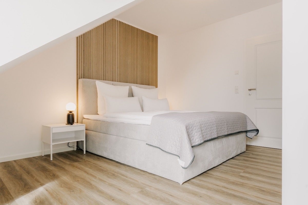 La perfection sur 89 mètres carrés - Nous vous présentons notre appartement de See - Suite 4 sur deux étages avec balcon privé. L'appartement dispose de trois chambres à coucher séparées, qui sont équipées d'un lit double boxspring, d'un lit 160 cm boxspring et de deux lits simples boxspring. Pour plus de confort, les fenêtres de l'appartement sont équipées d'une protection contre les insectes.