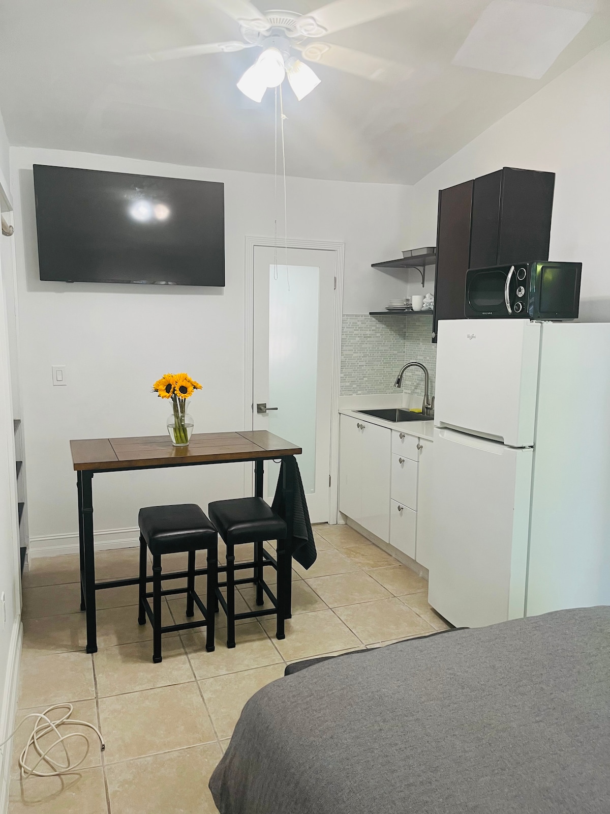 STUDIO avec salle de bains privée, WIC, kitchenette, climatisation, Wi-Fi, télévision et un parking avec accès à l'espace barbecue. Bon emplacement, près de l'aéroport, C. Gables, C. Grove, Downtown, Brickell et Little Havana. Bons transports en commun et restaurants dans le quartier. À seulement 4 pâtés de maisons du côté est de Coral Gables.