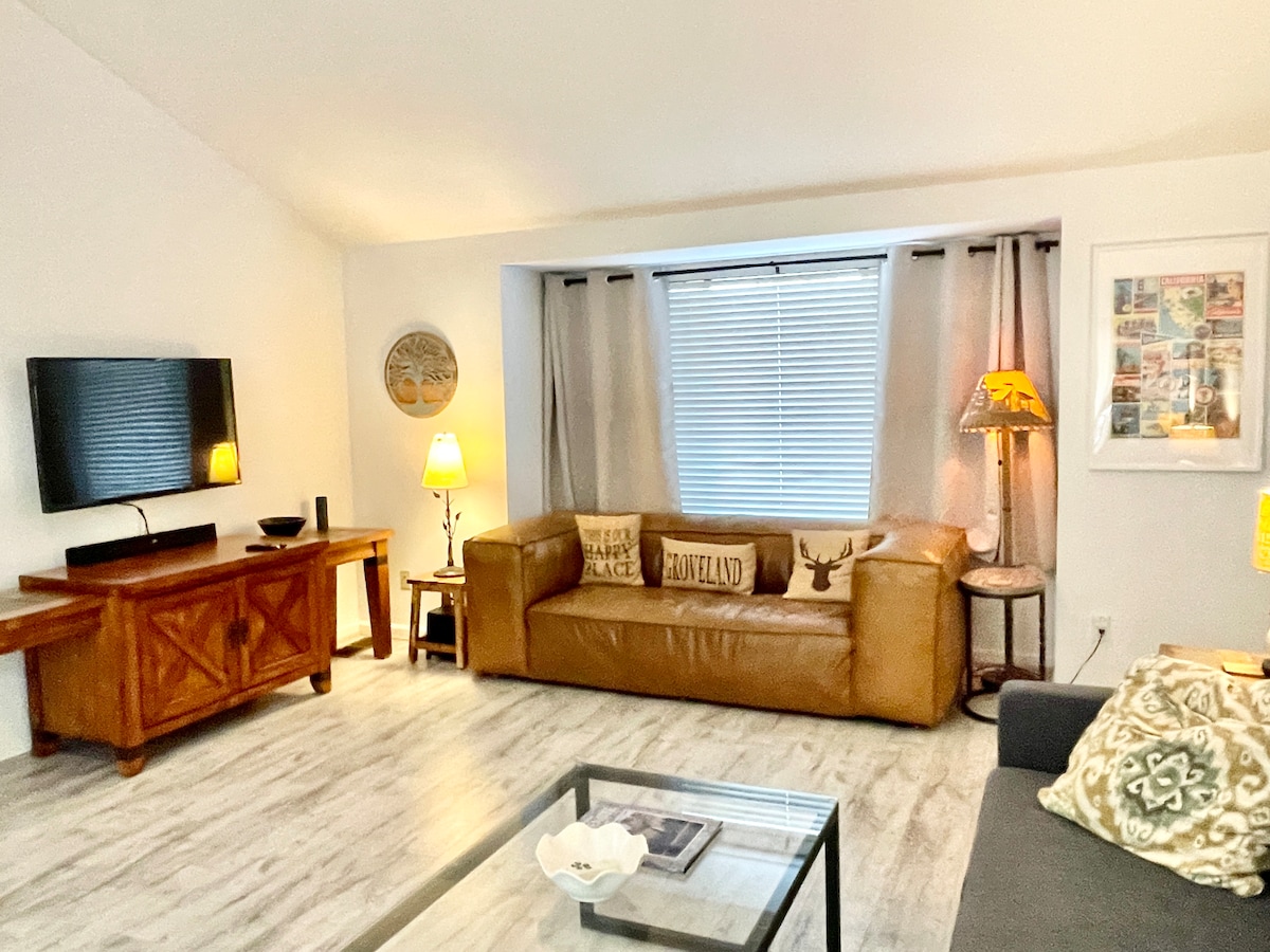 Superbe maison de montagne privée dans une communauté au bord d'un lac avec tous les équipements modernes. Cette maison de 2 étages dispose de 2 200 pieds carrés, 3 chambres, 3 salles de bain, 2 salons et une grande terrasse. La maison dispose du chauffage et de la climatisation centralisés, d'un concept cuisine/séjour ouvert avec un grand îlot pour se réunir, ainsi que d'une connexion Wi-Fi et de téléviseurs intelligents. Cette maison est joliment meublée et décorée avec une touche vintage. À quelques minutes du lac ou du terrain de golf, et à environ 45 minutes de l'entrée de Yosemite.