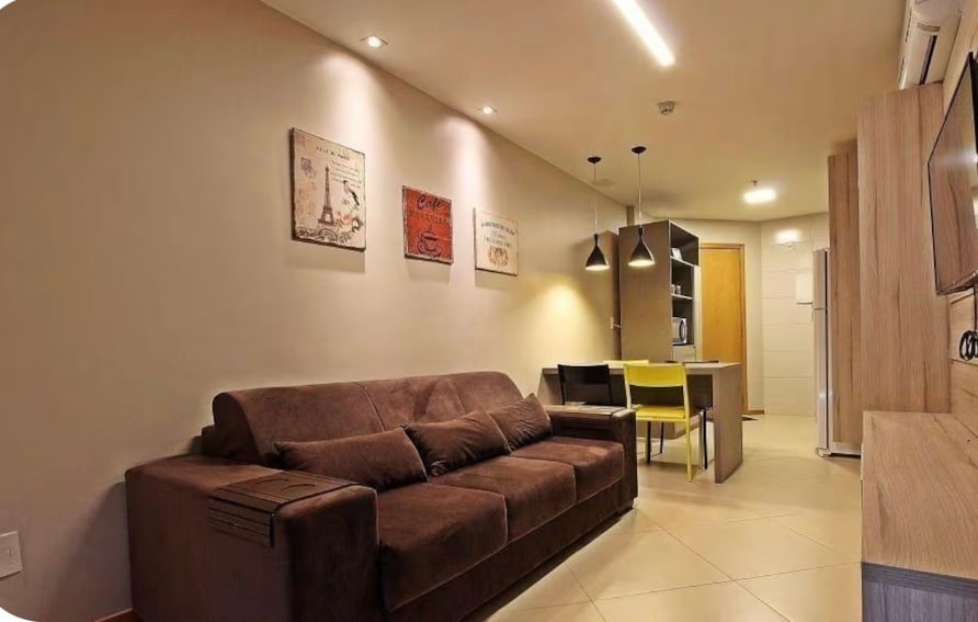Appartement au Life Resort, face au lac Paranoá, jardin et piscines, décoré pour le bien-être des clients, avec de nouveaux meubles, lit queen-size, minibar, télévision de 50", machine à café Nespresso, filtre à eau froide, armoires et porte-bagages, fer à repasser, sèche-cheveux, lit bébé amovible (sur demande), mixeur, micro-ondes, assiettes, verres, couverts, casseroles et ustensiles. Comme courtoisie : mini savon, shampoing et après-shampoing, linge de lit et de bain, produits de nettoyage et WiFi.