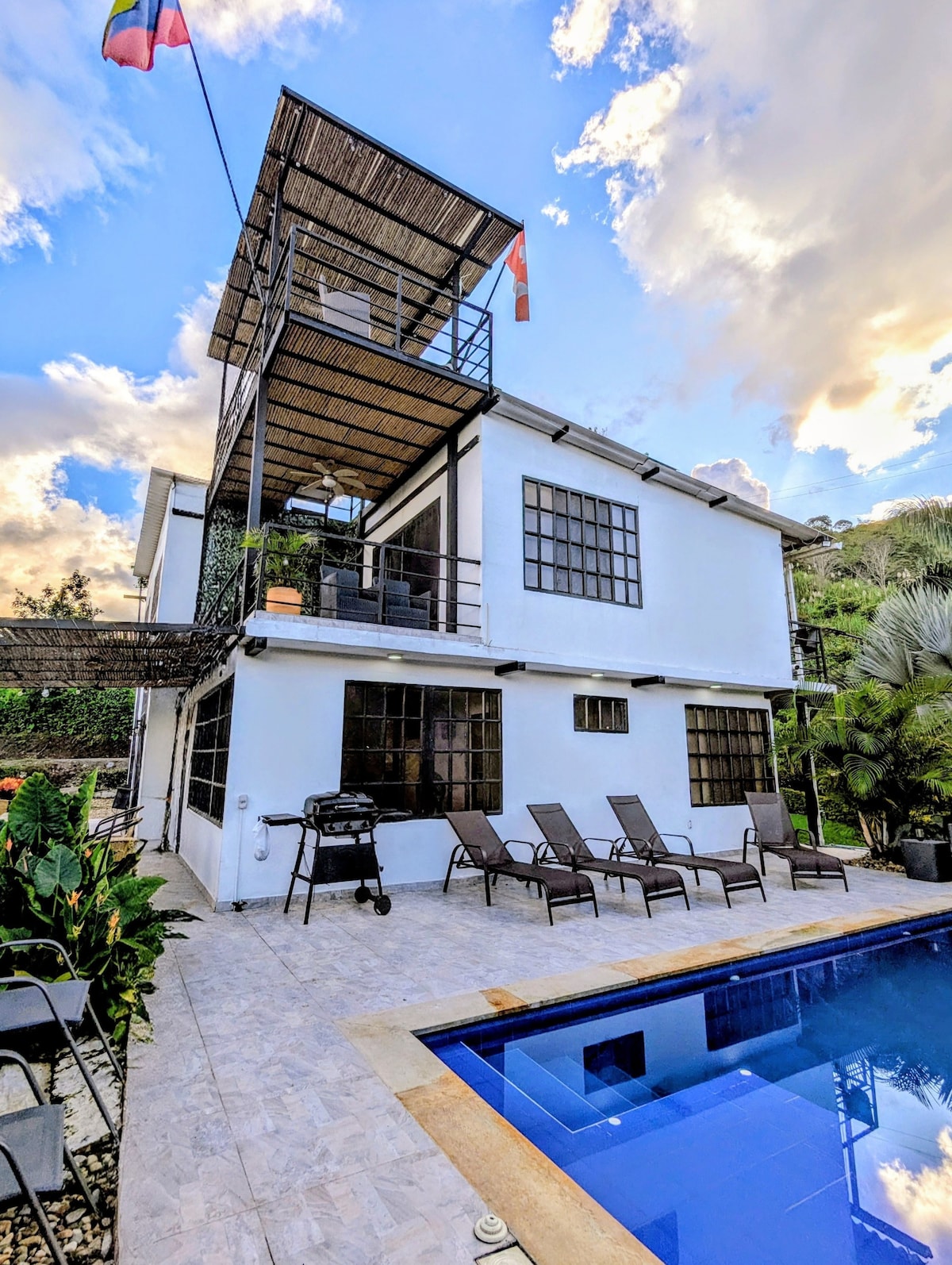 ✨Bienvenue à la Finca Boutique Los Laureles Villeta-Hotel Hacienda Los Laureles ✨ Luxe, intimité et nature en parfaite harmonie Plongez dans 350 m² d'élégance à la Finca Boutique Los Laureles : piscine privée, vues majestueuses, 4 chambres et 5 salles de bain. 💚 Énergie solaire, conception bioclimatique et indépendance énergétique totale. Idéal pour ceux qui recherchent le confort, la durabilité et une expérience exclusive en pleine nature.