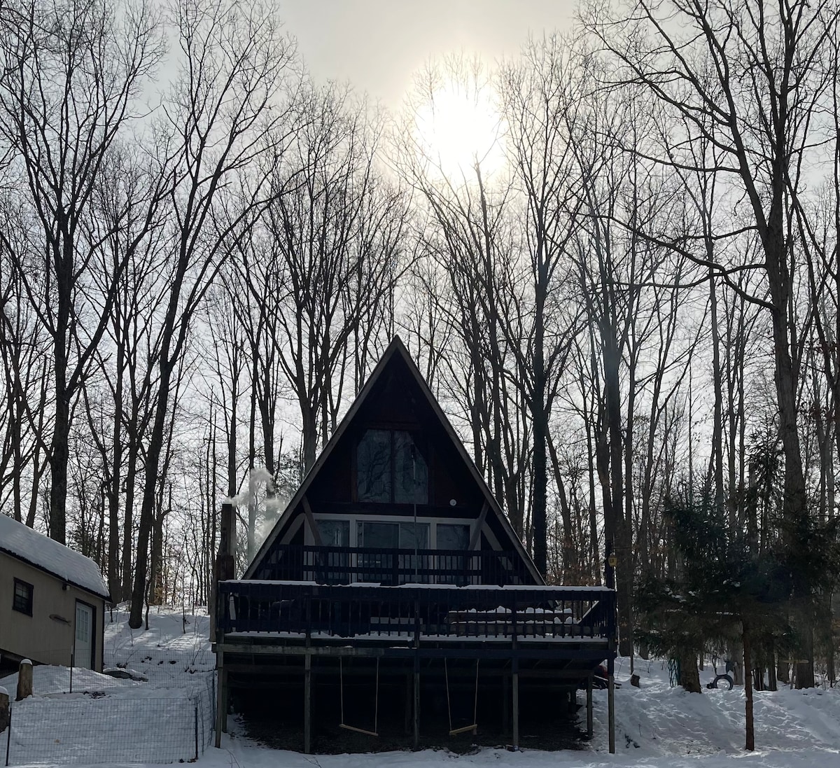 Escape to this cozy and scenic 1-bedroom A-frame cabin and enjoy a relaxing getaway on a private lake. Admire the breathtaking views from the outdoor deck, or stay warm and cozy inside the beautiful cabin by the fireplace. Bring your favorite records to play on the vintage record player and add a romantic touch to your peaceful stay. This charming cabin is the perfect place to fulfill all your relaxation dreams. No Hunting, No Parties