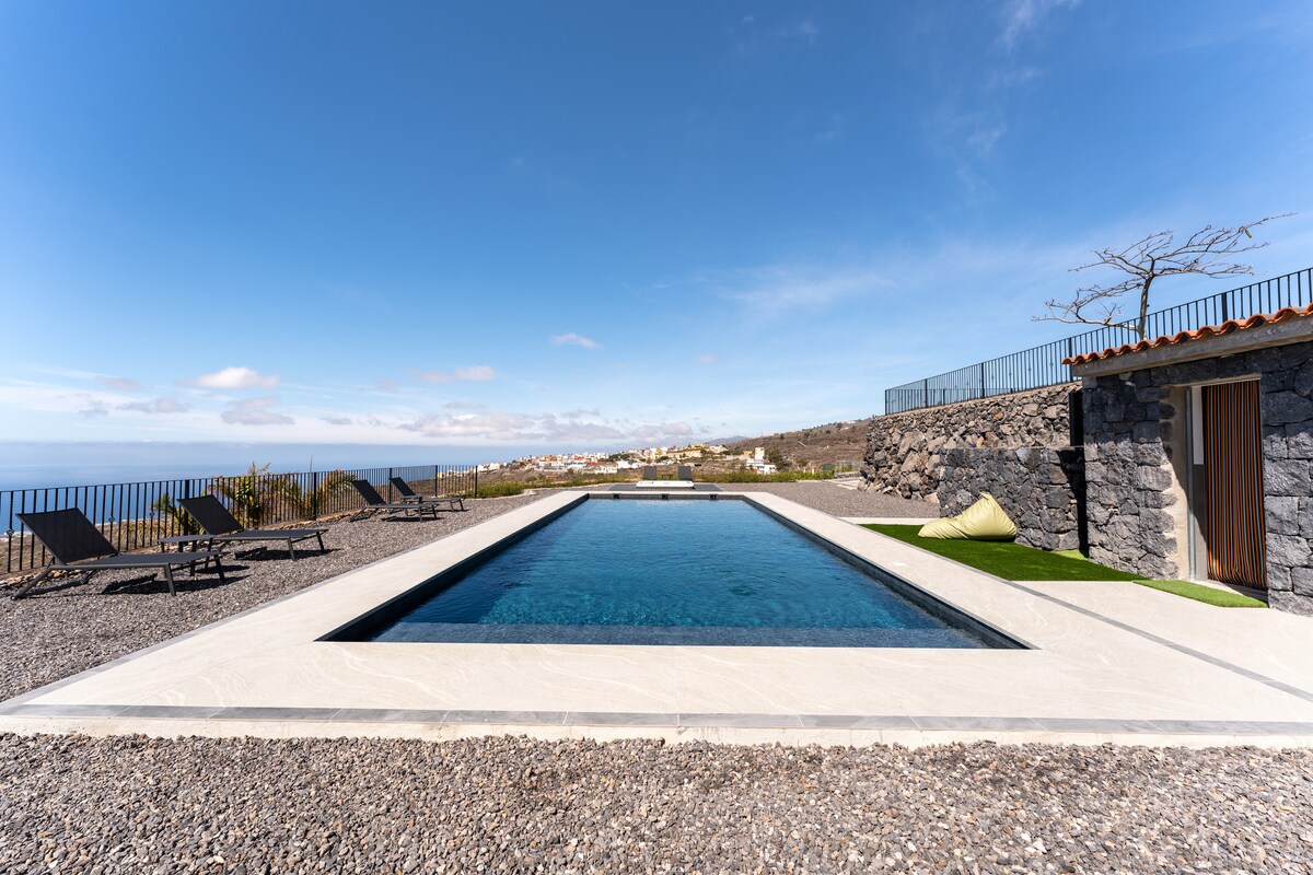 @sleephousetenerife Belle maison de style canarien avec deux chambres récemment rénovées, une grande terrasse et une piscine avec solarium et espace détente. La maison est située dans un quartier calme avec une atmosphère rurale mais avec l'avantage d'être à seulement 15 minutes de la plage. La maison est au sommet d'une colline et offre une vue panoramique merveilleuse et propre sur la mer. Les couchers de soleil sont magnifiques avec l'île de La Gomera en arrière-plan.
