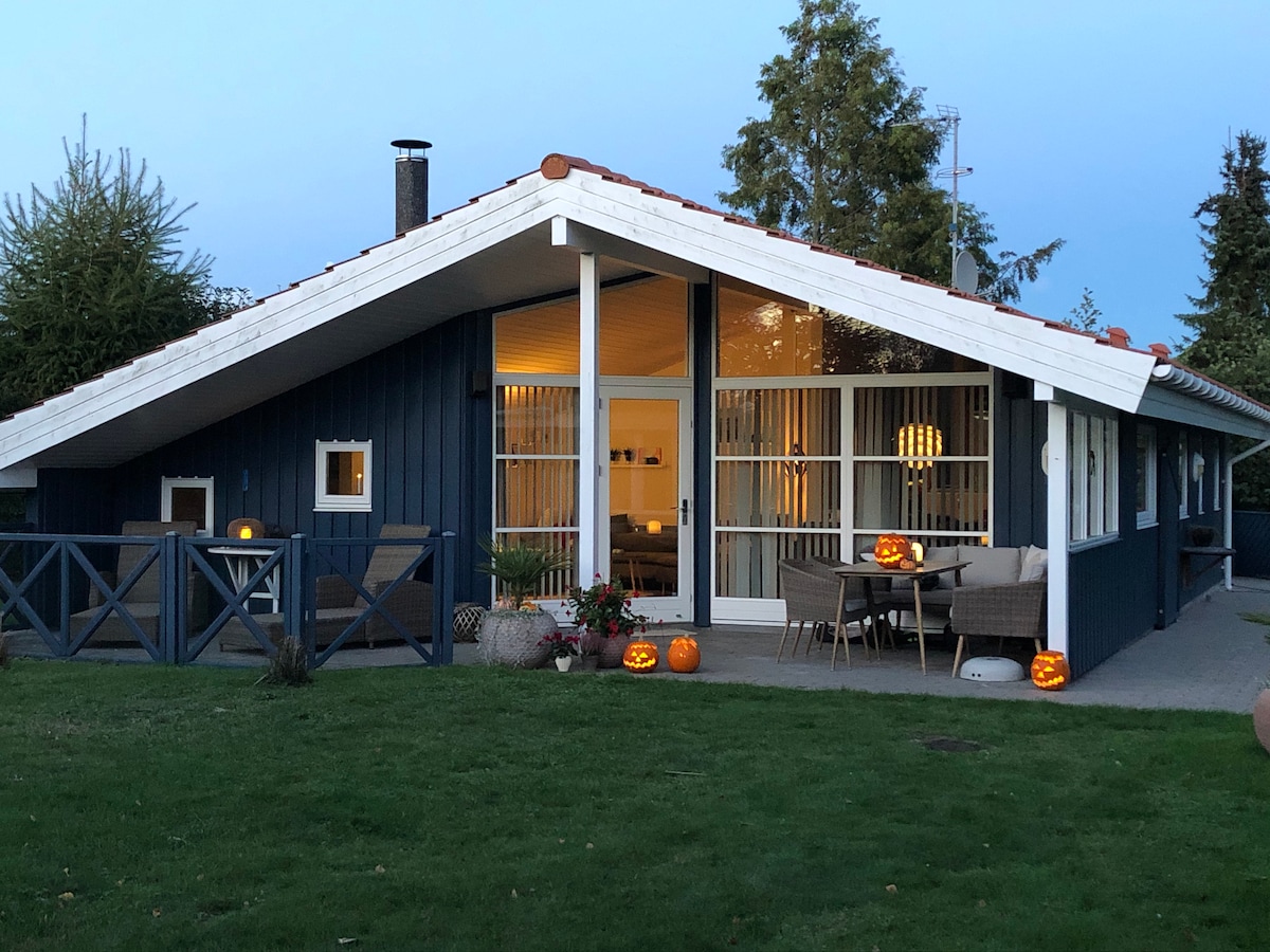Cette maison de vacances confortable est située dans un cadre pittoresque et paisible dans la région de villégiature la plus méridionale du Danemark. Elle est équipée d'une pompe à chaleur écoénergétique et d'un poêle à bois qui ajoute de la chaleur et du confort lors des soirées fraîches. La cuisine bien équipée comprend un réfrigérateur avec congélateur, un four à convection, quatre plaques vitrocéramiques, un four à micro-ondes, une cafetière, une machine Nespresso, un grille-pain et un lave-vaisselle. Deux téléviseurs intelligents avec Netflix et Prime Video – veuillez utiliser votre propre compte.