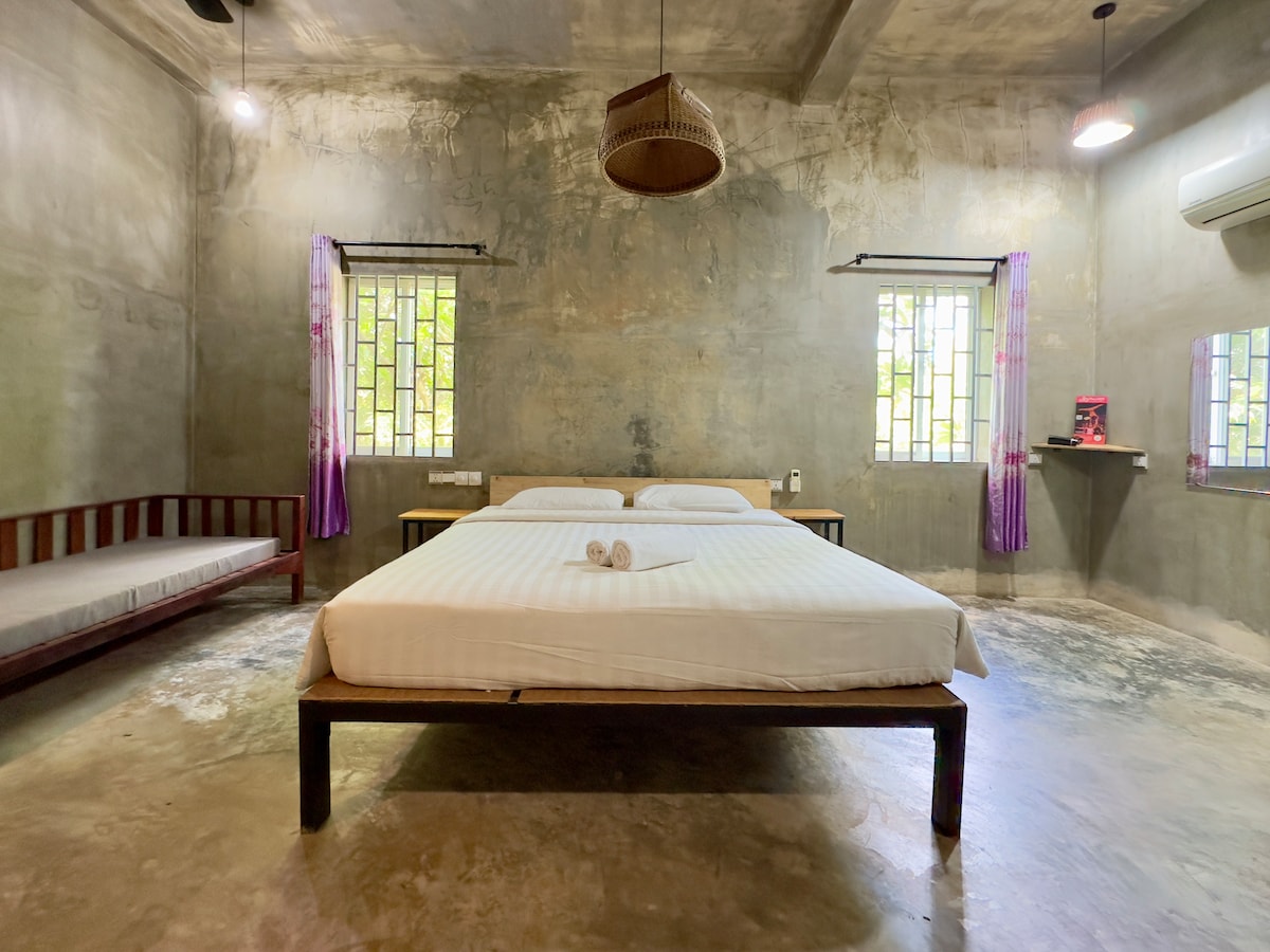 Faites-vous plaisir avec le front de mer le plus beau et le plus paisible de la nature. C'est un endroit où vous pouvez vous reposer et vous connecter avec vous-même et avec les environs. La salle de bains privative dispose d'un grand lit double et d'une baignoire avec vue et accès direct à la mer. À marée basse, la plage rocheuse est découverte où vous pouvez apercevoir des crabes, des méduses, des mudskippers et d'autres espèces marines. Vous pouvez louer un kayak gratuitement, ou marcher jusqu'au parc national Mu Ko Phetra (à 1 km) et voir la plage naturelle ou même voir des moines !
