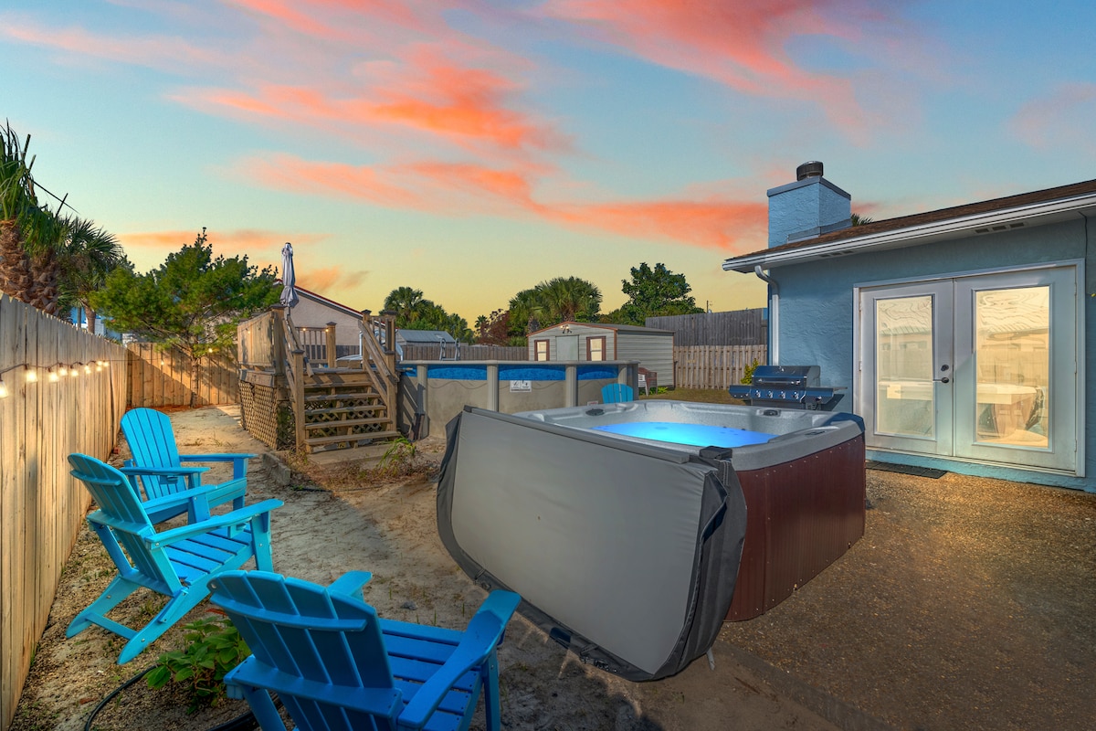 À ☀ 5 min à pied de la plage. À distance de☀ marche des restaurants, fast-food, magasins ☀ Chiens acceptés moyennant des frais supplémentaires. Quartier ☀ central et calme. À quelques☀ minutes de Pier Park et Frank Brown Park. Cour ☀ clôturée avec jacuzzi, brasero, aire de pique-nique, jeu de cornhole. Parfait pour les vacanciers, les familles, les couples ou les petits groupes qui veulent avoir beaucoup à faire après avoir passé leur journée à la plage. Capacité d'accueil de 6 personnes : Chambre 1 : lit King Size + lit gigogne double (tirer pour sortir) + salle de bain attenante Chambre 2 : lit Queen Size Séjour : chaise gigogne double