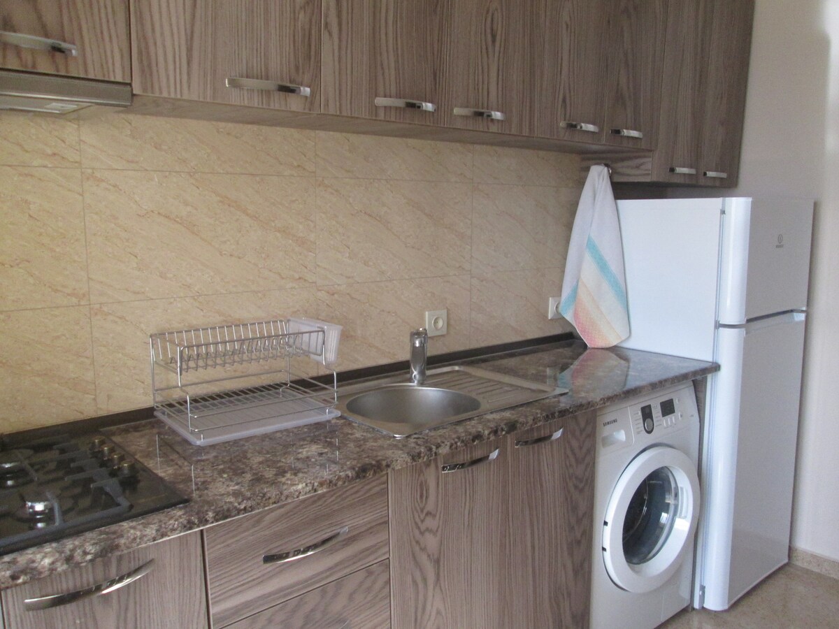 Appartement confortable de 50 m avec deux chambres, au bord de la mer pour 2 à 5 personnes, équipé de tous les appareils nécessaires, avec un balcon confortable. Il y a un lieu de travail et un coin confortable pour des soirées romantiques. Sur le lit, vous pouvez profiter d'une belle vue sur la mer . En 5 minutes à pied, il y a un supermarché deux chaînes, deux pharmacies de chaîne et trois banques. À 10 minutes à pied du marché central, où vous pouvez acheter les légumes les plus frais, les fruits et il y a aussi des magasins où tout cela est moins cher.