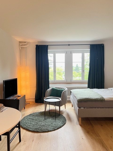 Confortable appartement de 2 pièces avec beaucoup d'ambiance et une vue phénoménale sur les Alpes. À environ 10 minutes à pied de la station de S-Bahn. Centre de Berne accessible en 15 minutes en train. Belle zone de loisirs directement à partir de la porte d'entrée. Un eldorado pour les promeneurs, les coureurs, les cyclistes, les nageurs de rivière ou les patineurs en ligne. L'appartement se trouve dans le grenier avec ascenseur. Un parking juste devant la porte. Les hôtes vivent dans la maison et se tiennent volontiers à votre disposition pour des conseils et des actions.