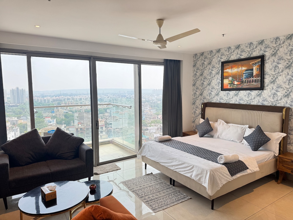 Have fun with the whole family at this stylish place. This place that offers everything you'll need for a luxurious stay. It has all the amenities and full security & privacy. Relax & Enjoy time with your loved at Ultra Luxury Studio. Experience the lavishness of a 5- star property with 5-star Amenities. This place is private and independent not shared with anyone. Enjoy outdoor dining in beautiful balcony with a beautiful city view. Very private with no noisy Neighbours.