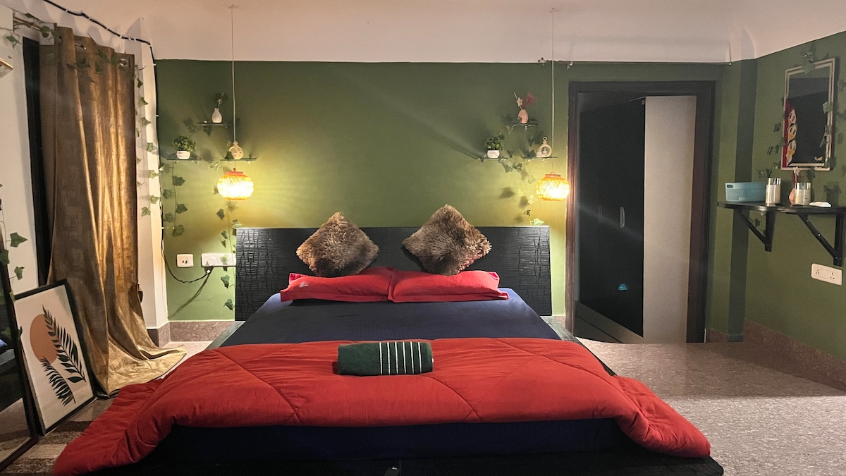 Un hébergement paisible, confortable et élégant avec une chambre spacieuse, un hall avec cuisine et une salle de bain attenante pour une famille, un couple ou un groupe de 4 à 5 personnes. Le séjour comprend tous les équipements modernes comme la télévision, le WiFi, le geyser pour un séjour parfait et accueillant ; que ce soit un court séjour privé ou un séjour de vacances plus long. La cuisine est bien équipée pour cuisiner des repas (livraison de nourriture en ligne à 15 minutes est également disponible). Situé à proximité de l'autoroute, il est facile d'entrer et de sortir sans tracas en évitant la circulation fatigante de la ville.