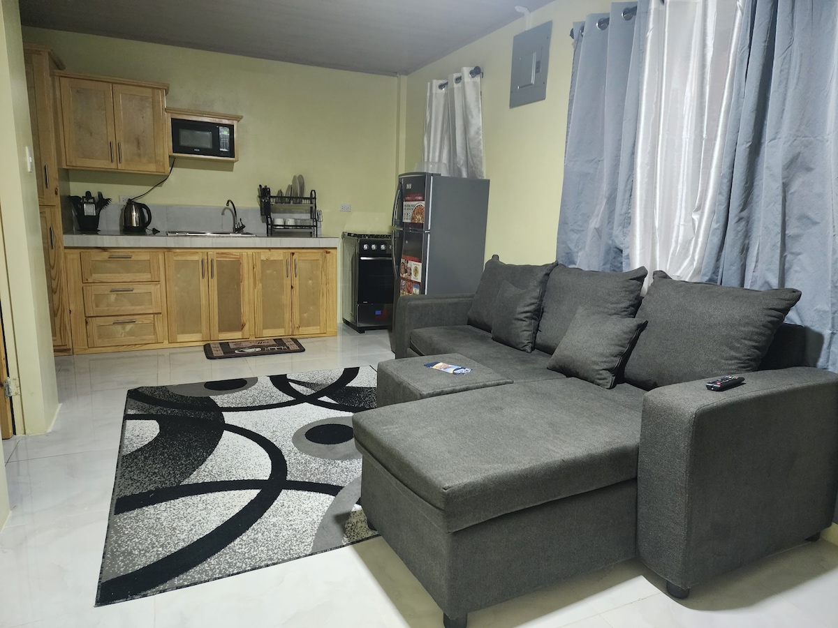 À deux minutes en voiture du siège de la CARICOM, du centre de congrès Arthur Cheong, des centres commerciaux Movietown et Giftland. À 10 minutes en voiture du centre de Georgetown. Plus spacieuse qu'une chambre d'hôtel. Tout neuf. La cuisine peut être faite.